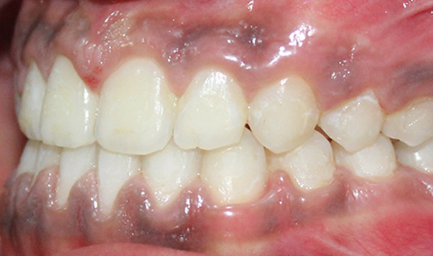 - If front teeth are too far forward and the lip doesnot cover the teeth .